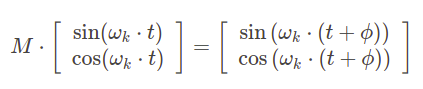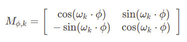 An interesting hypothesis from the paper introducing Transformer, Attention is all you need, is that positional encoding allows the model to easily learn relative positioning. The claim stems from the fact that for any fixed offset \(\phi\) there is a linear transformation from \(p_t\) to \(p_{t+\phi}\) that holds for any position \(t\). For each sine and cosine pair with a given frequency we can find 2x2 transformation matrix \(M\) such that: