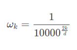 Now, if we look at the Fourier transform and positional encoding function, we can see the similarity. In fact, sampling provided Fourier transform function at points \(\omega_k\) for \(k=0,1,…,\frac{d}{2}\) and inserting these sampled values into a single vector produces positional encoding. We can interpret it as a representation of word position in frequency domain.