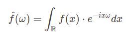 For the signals in the time domain, we can describe Fourier transform in the following way. Let \(f:\mathbb{R}\rightarrow \mathbb{C}\) be a complex time signal and \(\omega\ \in \mathbb{R}\) be a frequency. Then Fourier transform of \(\hat{f}\) of \(f\) evaluated at \(\omega\) is given by the formula