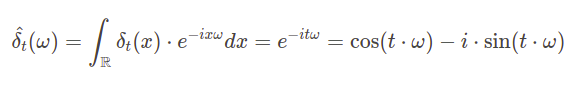 What‘s the intuition behind this formula? We can interpret a word with position \(t\) in a sequence as an impulse in the time domain – Dirac delta \(\delta_t\). This way we know that its Fourier transform will be complex exponential, since according to the formula introduced in Fourier analysis paragraph: