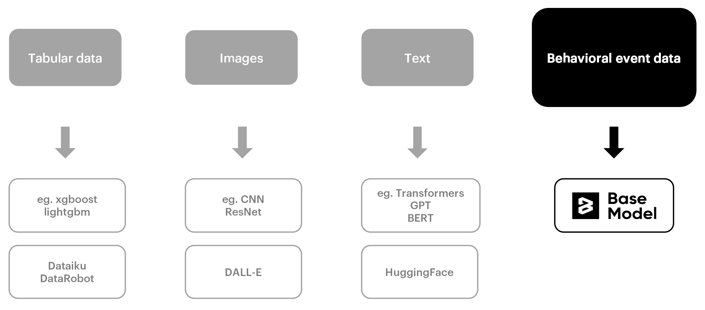 In this article we introduce BaseModel, a tool which makes the most of event data reflecting user behavior. Working with clients in many different industries, we have observed that large company data is often underutilized. Here we will discuss where our research on BaseModel arises from, how we meet strict requirements connected with big data processing, and how it can help data scientists make their work less time-consuming and more oriented towards the creative part of the process. We introduce some important concepts connected with AI-driven analyses of interactions hidden in event data and how to use it to better understand your customers and services.